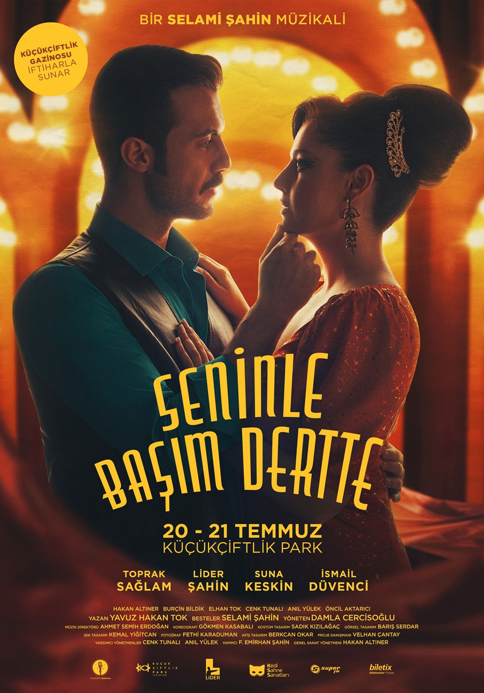 İlk gösterimi 20 ve 21 Temmuz'da KüçükÇiftlik Park'ın mekan sponsorluğunda gerçekleşecek olan, başrollerinde Toprak Sağlam, Lider Şahin, Suna Keskin ve İsmail Düvenci gibi isimlerin yer aldığı Seninle Başım Dertte isimli müzikal, 80'li yılların rengarenk, eğlenceli ve bir o kadar romantik zamanlarını nostaljik sahneler ile birleştirerek izleyiciyi zamanda adeta bir yolculuğa çıkaracak.